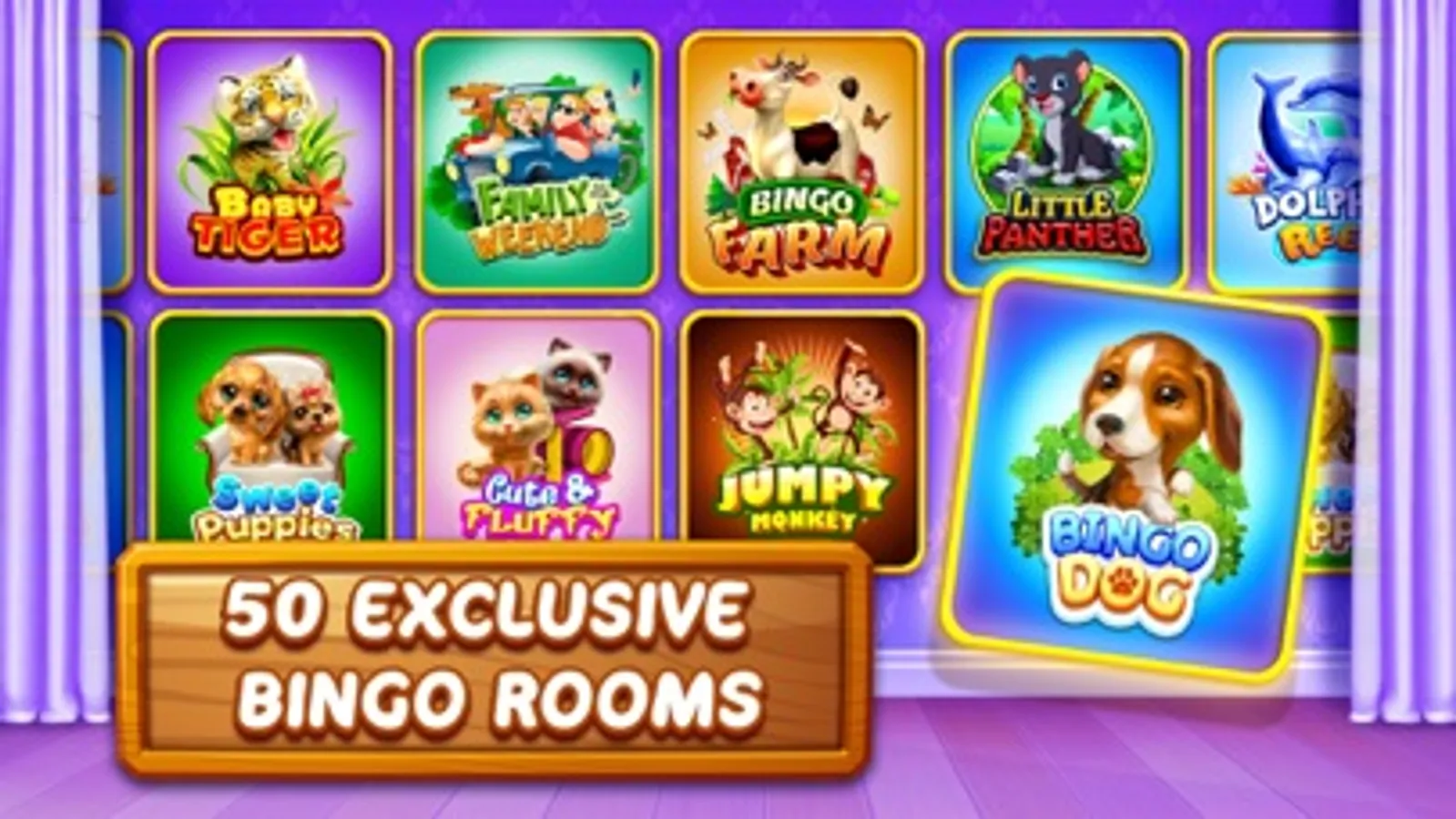 Play Bingo Like Never Before, Experience a game like no other! Compete against friends and unlock new rooms and cards every game!