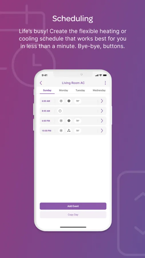 Smooth Scheduling: Our scheduling manager will help you set up an ideal, flexible schedule in a fraction of the time that it takes for programmable thermostats.