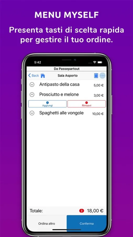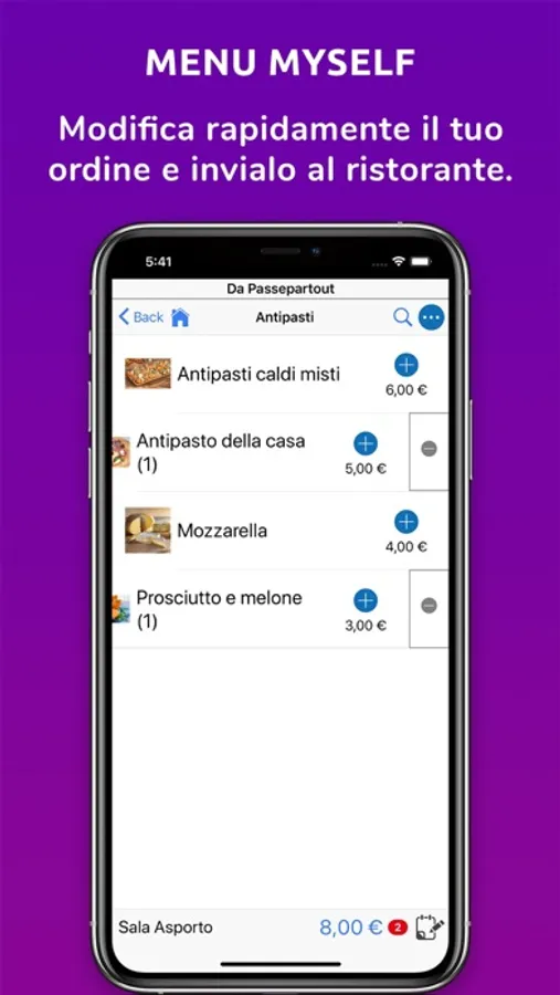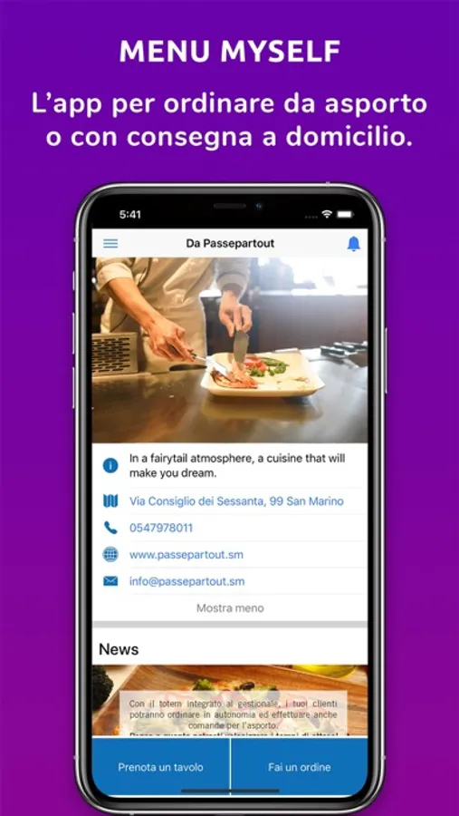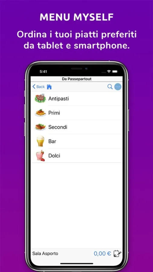 Menu MySelf is the App developed by Passepartout that allows you to order online from your favorite restaurants. The app can be used anytime, anywhere for takeaway or home delivery.
