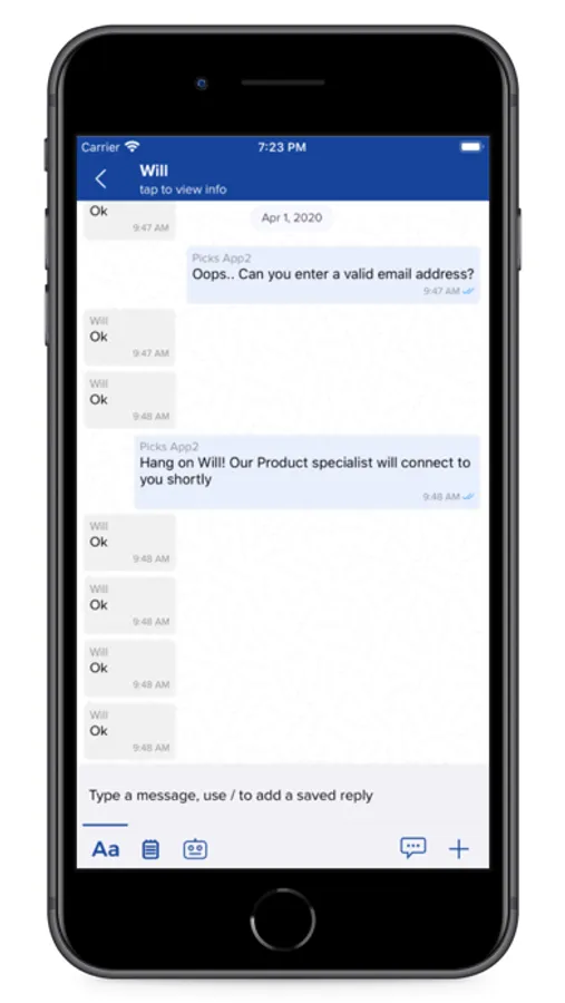 Resolve queries quickly by sending and receiving new messages to customers, receive instant notifications via the in-app messaging capabilities