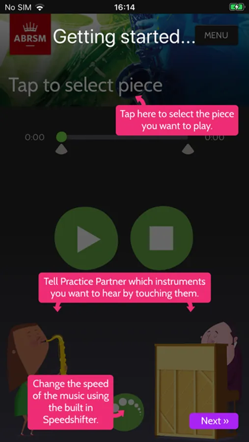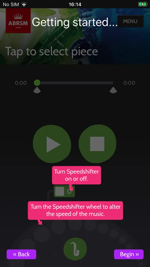 Use Saxophone Practice Partner to practise with the piano accompaniment, the alto saxophone part in isolation, or the duo ensemble recording. The app will help you to: