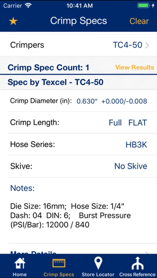 In addition to crimp specifications, the app also includes a cross reference to assist in finding the correct product number and a store locator to find a local distributor.