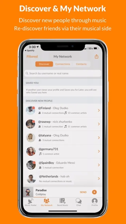 Discover and connect with people to meet new friends, all through the lens of music. Resonate Discover shows you people in order by those with the most common mutual favorite artists and friends.