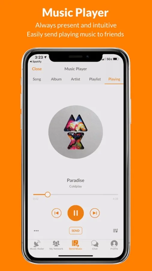 Resonate gives you a simple messaging platform to send, receive and share music inside chats with your friends.