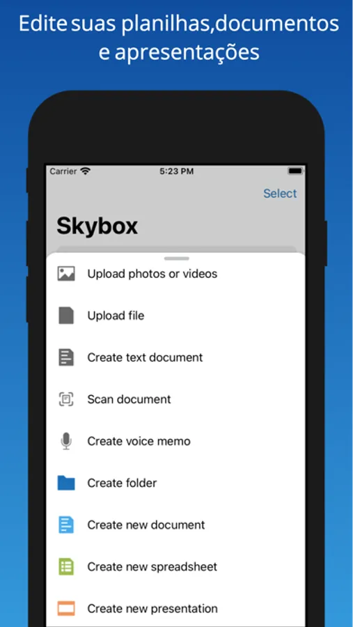 Visualize, envie, atualize, remova e compartilhe seus arquivos do seu skybox por este aplicativo.