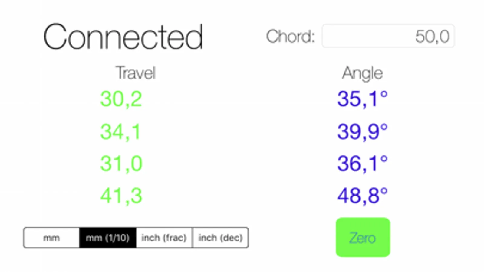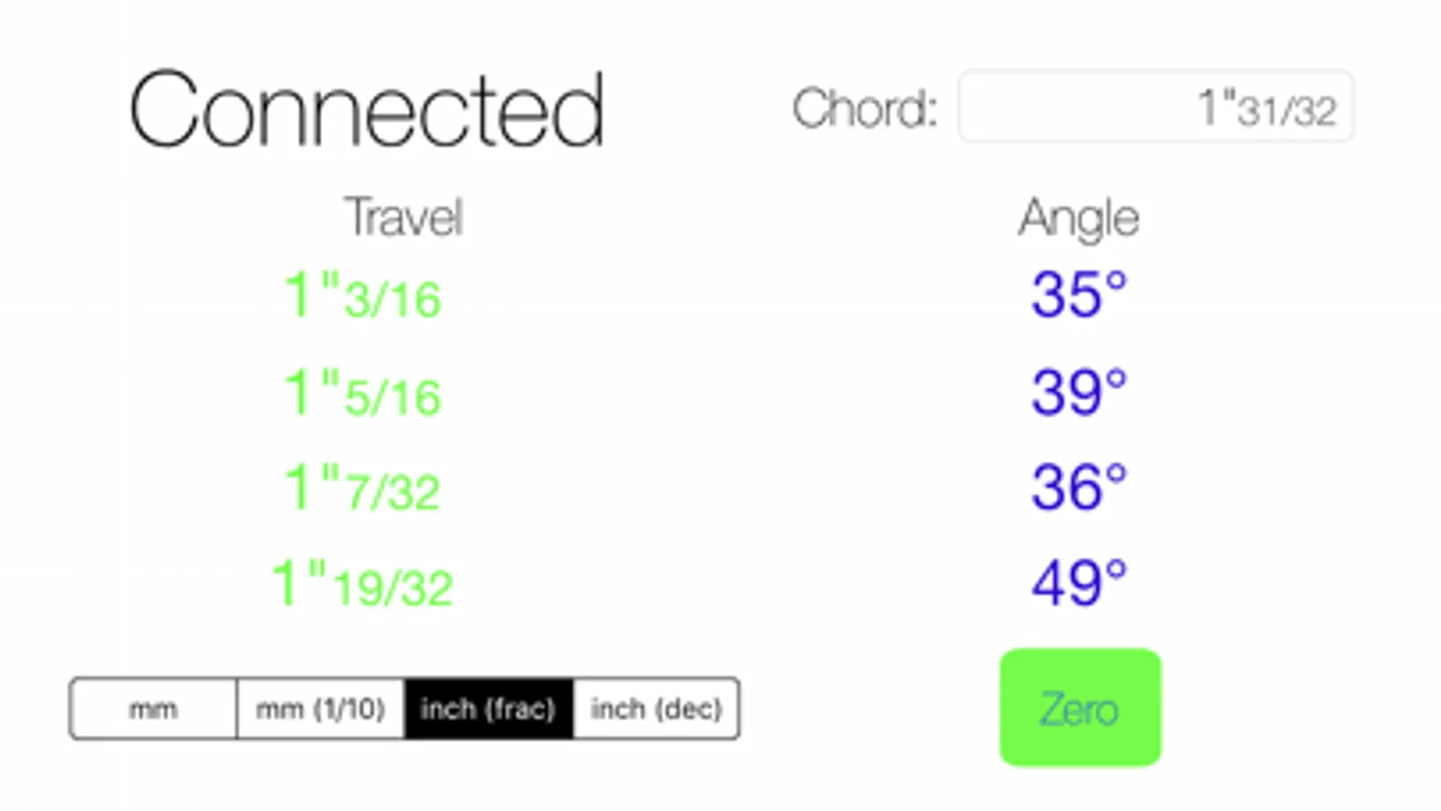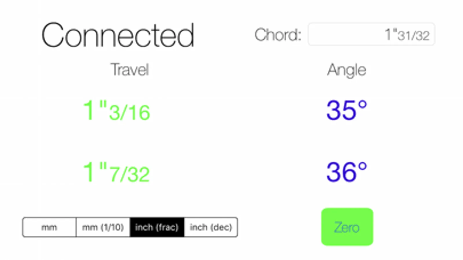 Then enter the length of the chord on the app, and press "Zero".