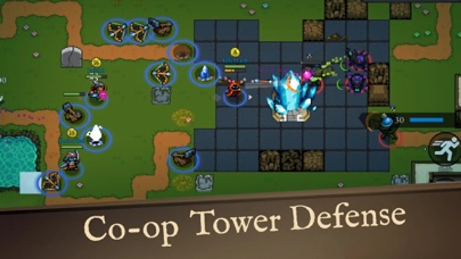 Tower Defense (Quads) - PvE: Team up with up to four players to defend the magical crystal against waves of oncoming enemies. Work together to build traps and automated defenses and ensure your victory!