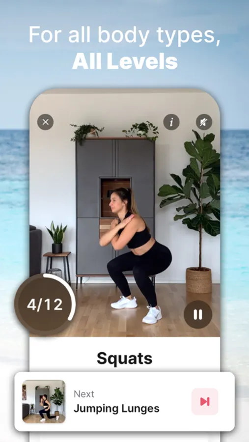 All workouts consist of 12 intervals with different exercises. By adjusting the intervals, you can perform all exercises at four different difficulty levels: