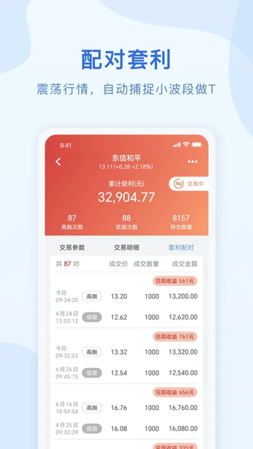 区间套利:基于股票日内价格的N型漫步规律和网格交易原理,自动捕捉小波段赚取日内价差,形成长期稳定获利的交易体系。
