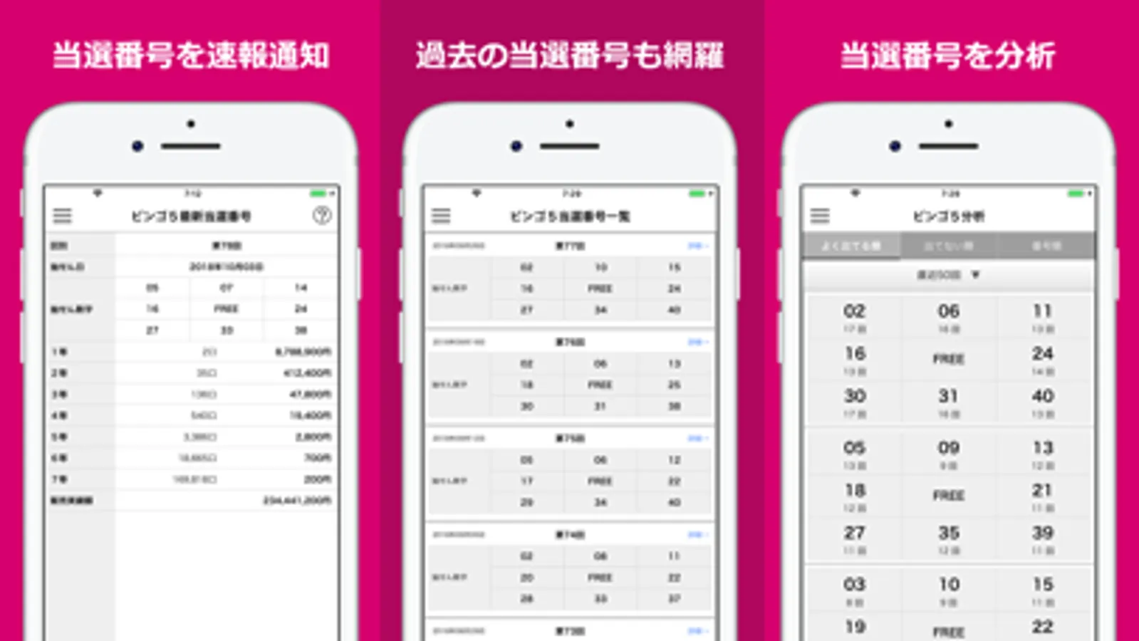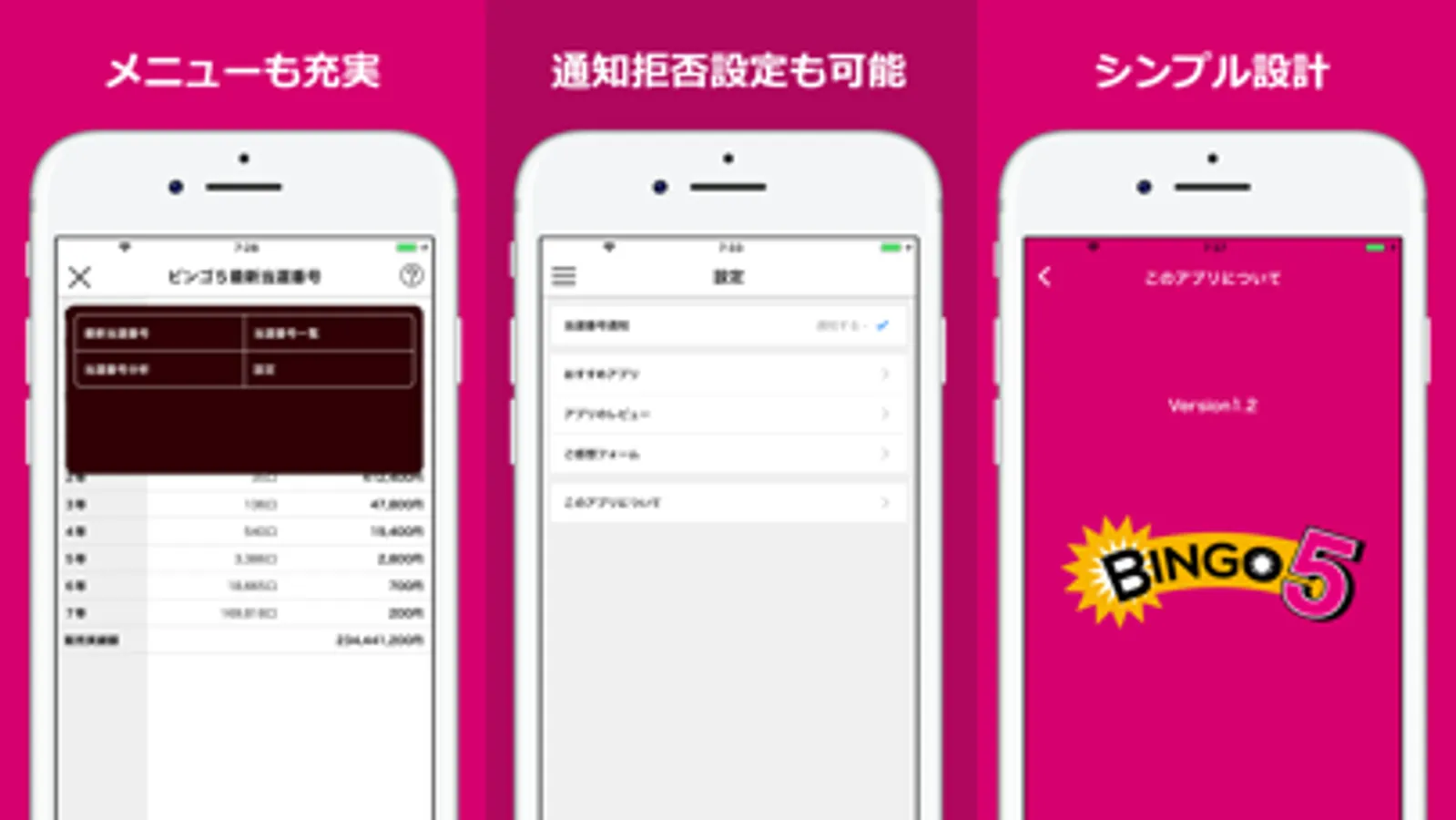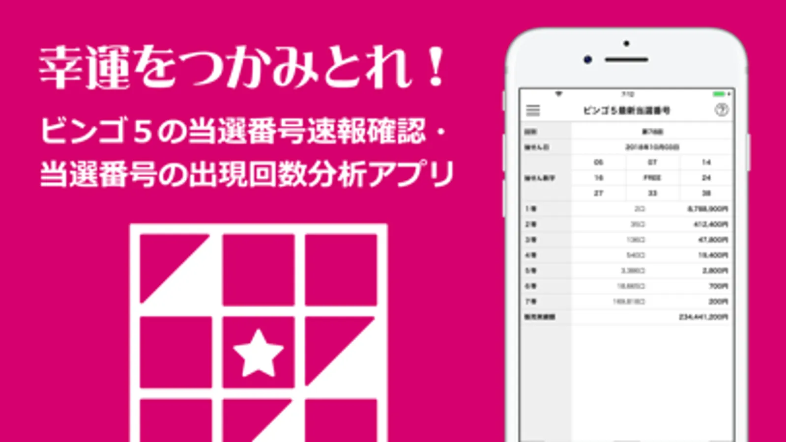 ビンゴ5の当選番号を抽せん日に速報通知するアプリです。