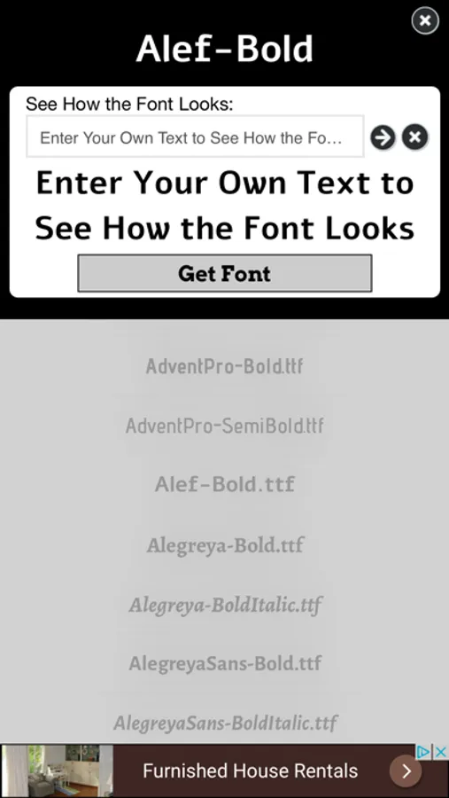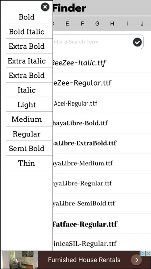 Font-Finder provides you with access to thousands of the most popular fonts. All fonts available in the application are FREE to use and able to be emailed, Texted and shared via social media.