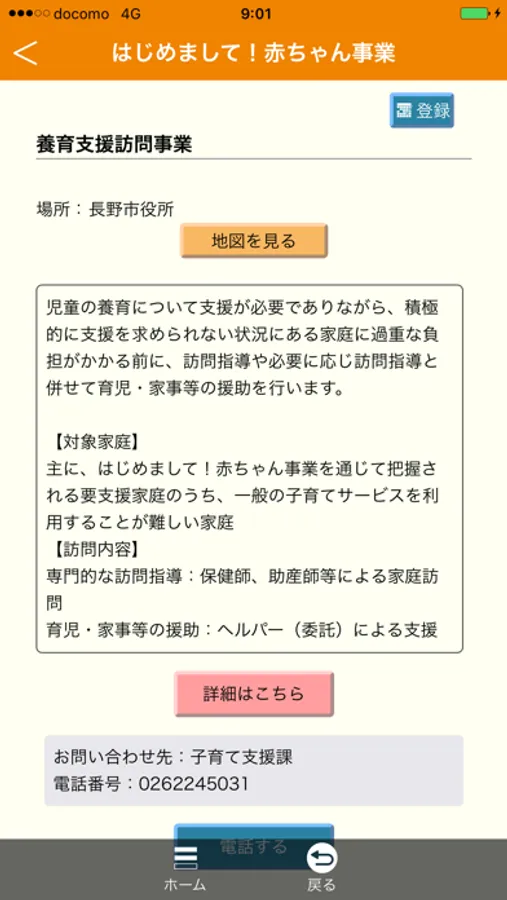 公共施設や医療機関の施設名、住所、電話番号などから施設を検索し、施設詳細情報や地図の表示、目的地までの経路検索も確認できます。