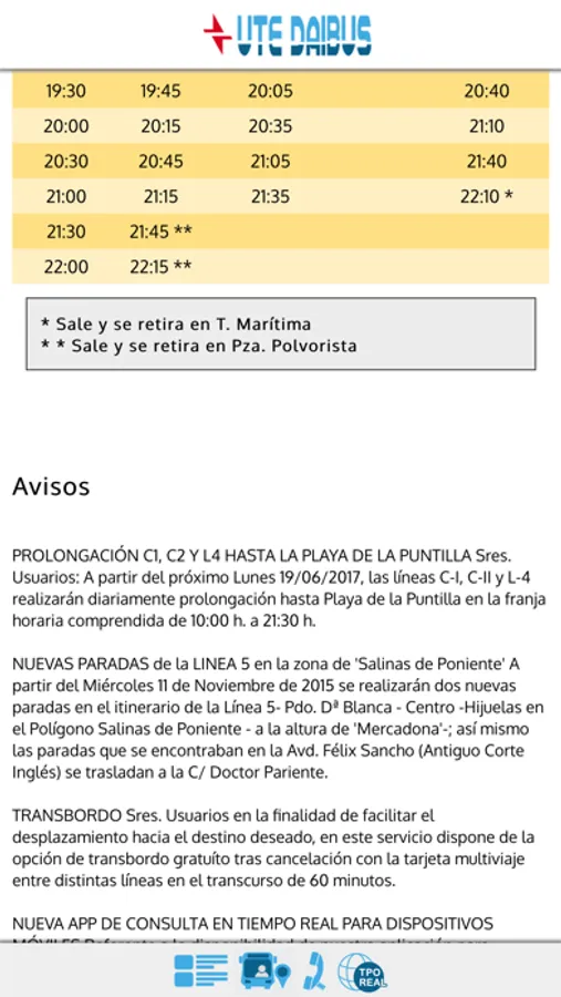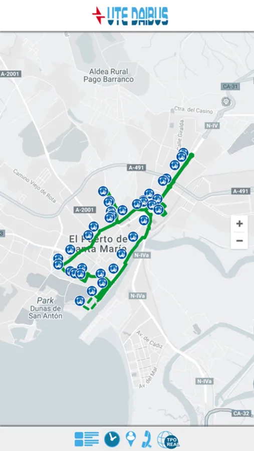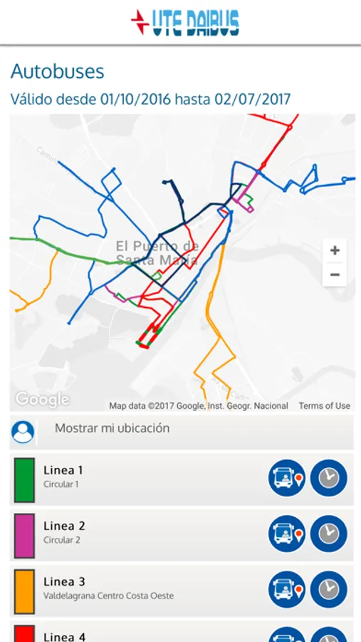 Acercamiento al usuario de Información sobre el Servicio de transporte Colectivo Urbano de la Ciudad de El Puerto de Santa María ofrecido en un interfaz intuitivo para acceso por un lado a información teórica de líneas, horarios y avisos; y por otro lado a ubicación personal y localización de Autobuses en servicio en las diferentes líneas.