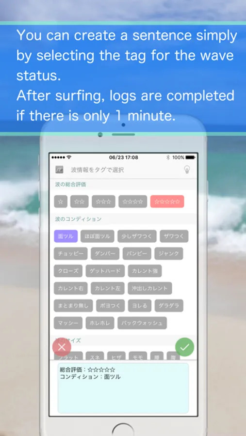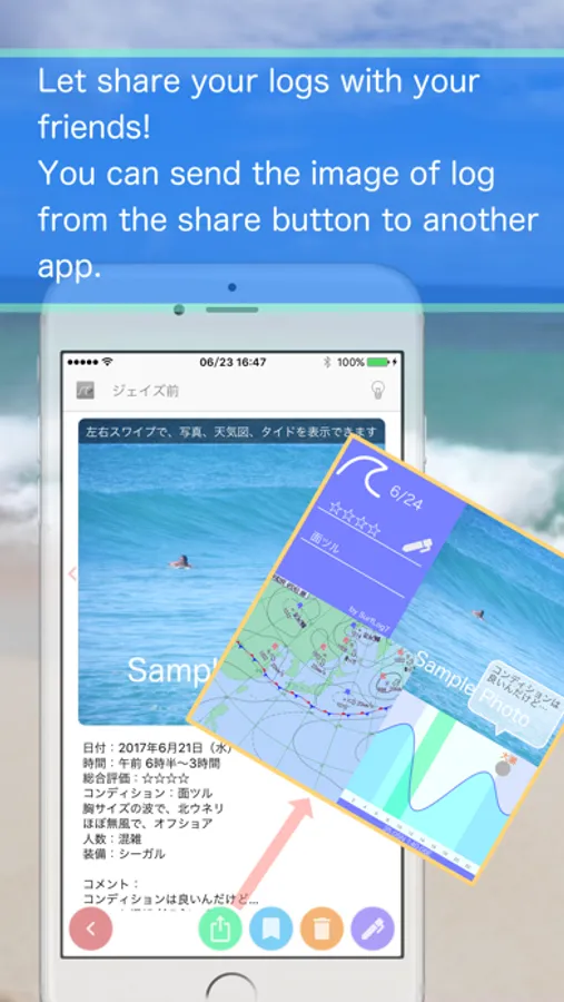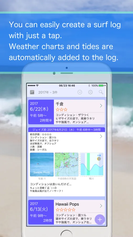 You can make a surfing log with just a simple tap operation.