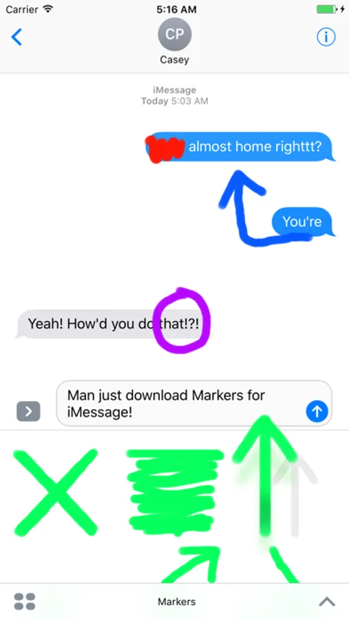 Press and hold any of these hand drawn marker marks, when they peel off place them anywhere in a conversation!
