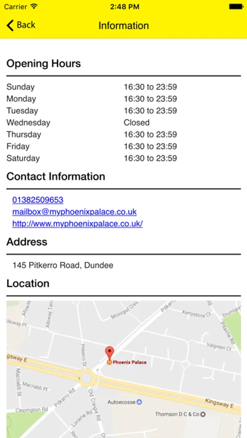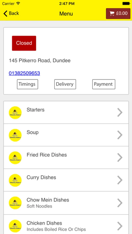 With the Phoenix Palace iPhone App, you can order your favourite starters, soup, fried rice dishes, curry dishes, chicken dishes, beef dishes, mushroom dishes, thai curry dishes, vegetarian dishes, european dishes, extra portions, special set dinners quickly and easily. It’s a Phoenix Palace store in your pocket!