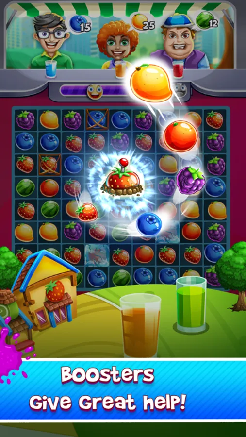 Each level gets progressively more difficult and you may need a little help completing the challenging stages. As you level up, you’ll gain access to useful power-ups to help match fruit, make delicious smoothies and have lots of happy customers.