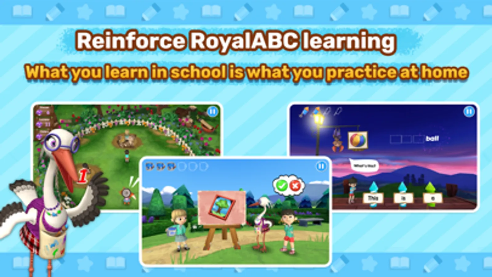 Welcome to RoyalABC World! A fun, challenge-based app that teaches children aged 3-6 British English through structured language learning games, stories, and songs.
