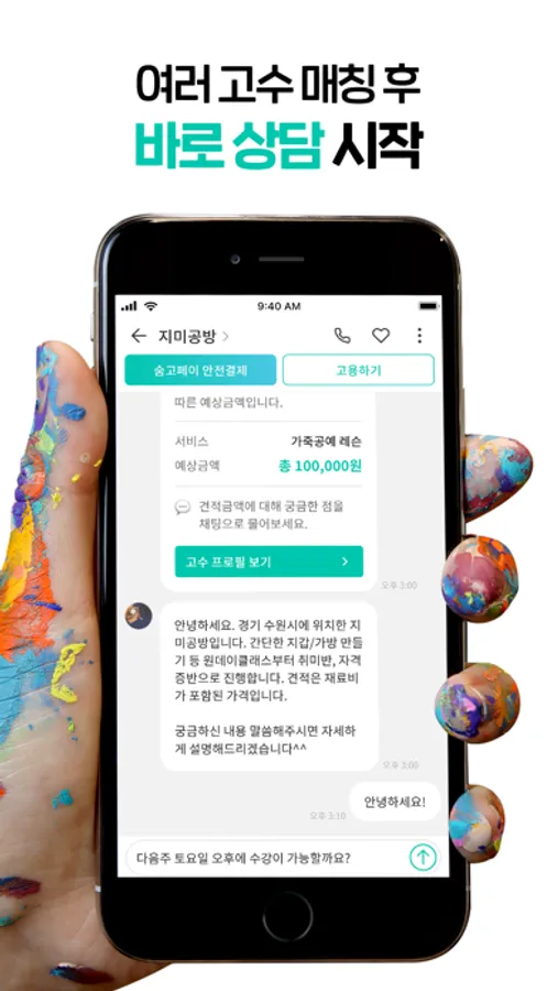• 숨고페이로 간편하게, 숨고보증으로 든든하게 거래하세요.