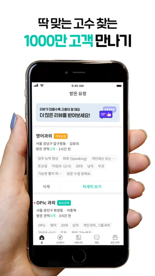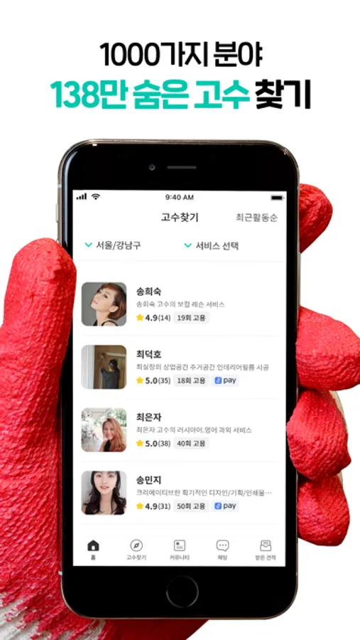 • 천 가지 생활서비스를 제공하는 90만 고수가 숨고에 모여 있습니다.