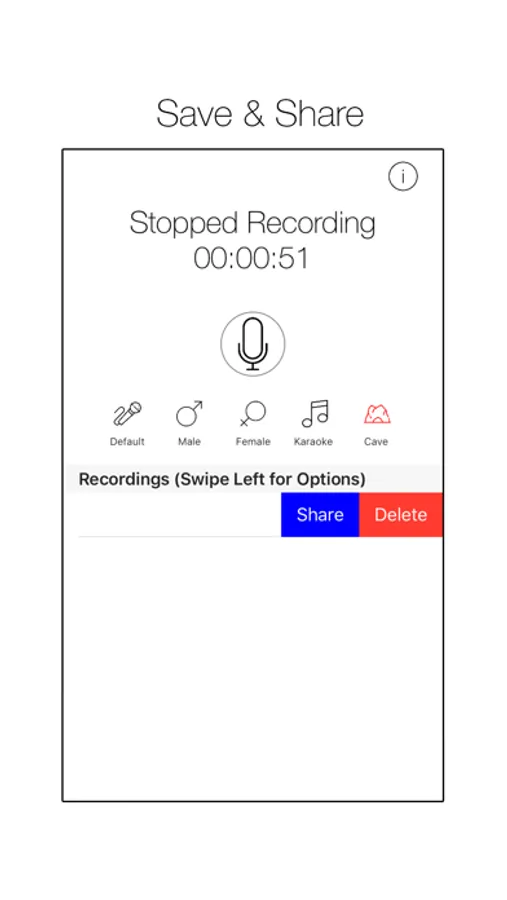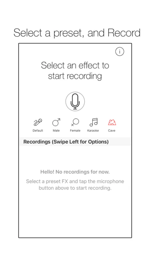 Four funny presets including male voice, female voice, cave and karaoke effects. More presets will be added soon.