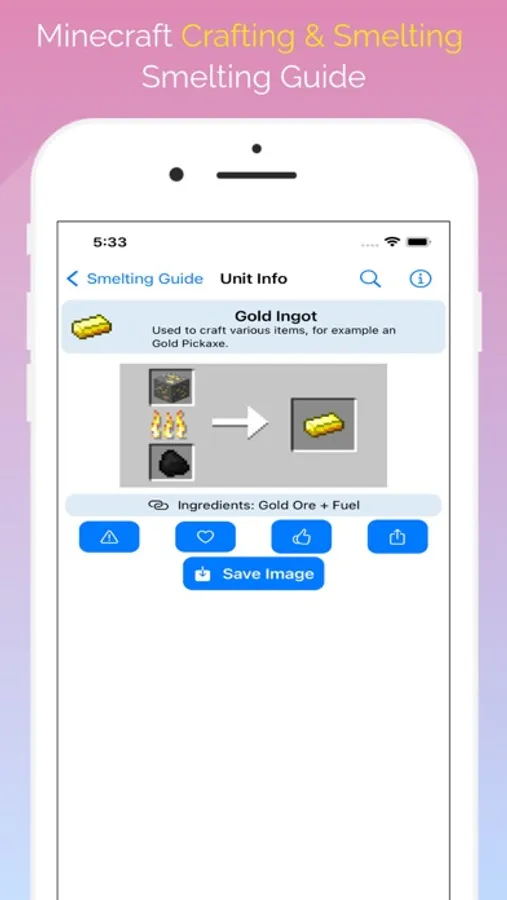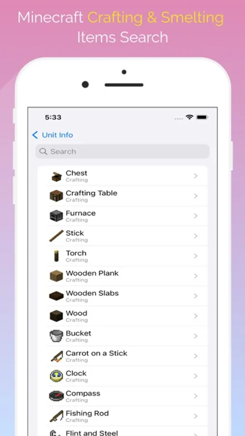 ** Crafting Guide for Minecraft - provides the recipes for crafting items in Minecraft. You can easily search through all of the items and even get the IDs of the items. This is a perfect companion app to Minecraft.