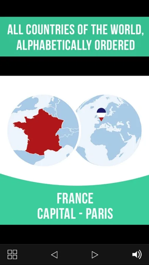 In our app you will find 579 flashcards containing world country flags, coats of arms (seals), locations, maps and capital cities.
