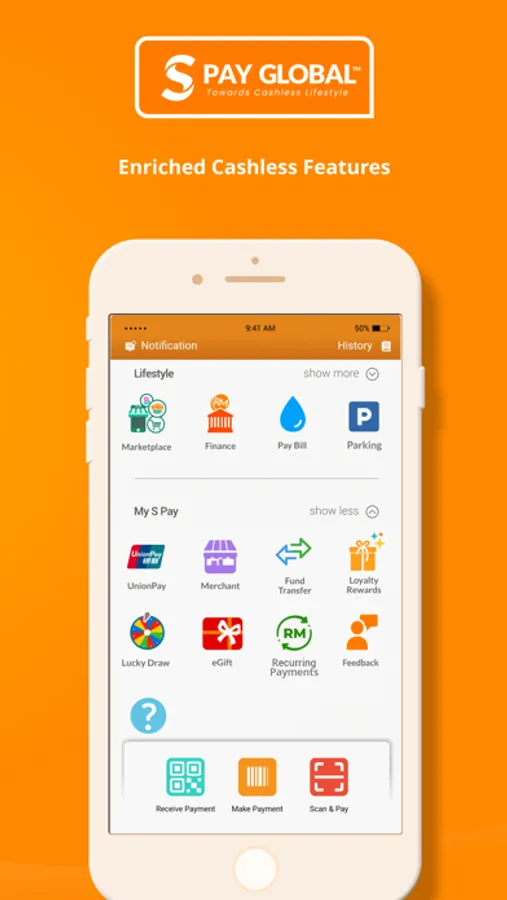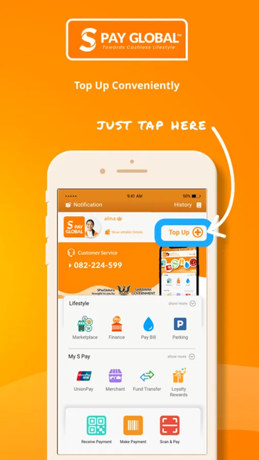SPayGlobal (also known as Sarawak Pay) is the Sarawak Government Fintech mobile app platform that provides a convenient and secured e-wallet functionality. Users can make digital payment for bills and purchases at participating merchants. Users can top up their e-wallet through internet banking and credit cards and enjoy the convenience of cashless payments.