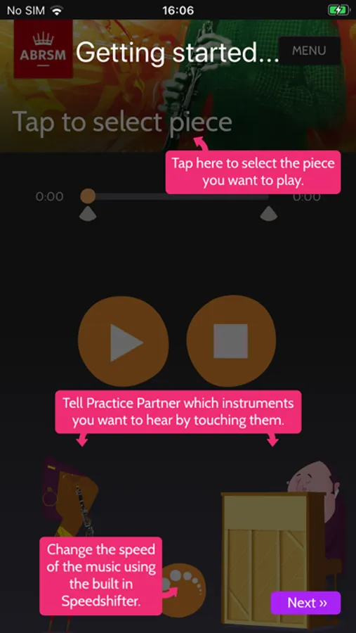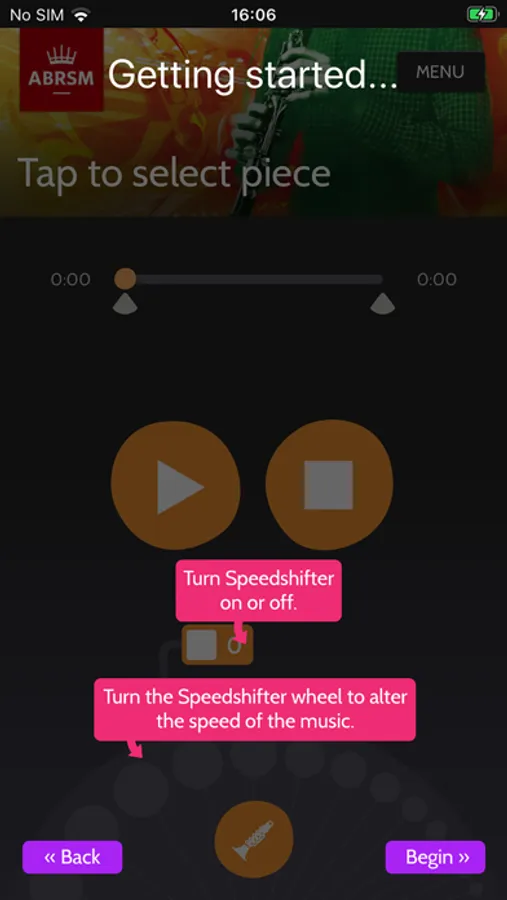 Use Clarinet Practice Partner to practise with the piano accompaniment, the clarinet part in isolation, or the duo ensemble recording. The app will help you to: