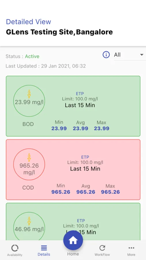 GLens displays information about various pollution parameters for Industries displayed in GLens website across India. It shows 15 min average data for each parameter. Also receive alerts if any parameters value is above the CPCB standard.