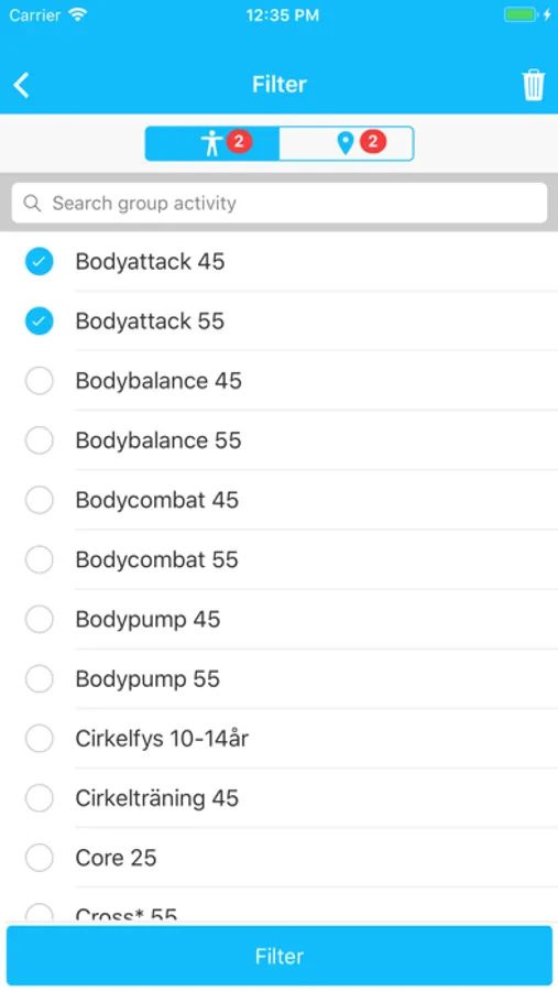 Logga in i appen med samma användarnamn och lösenord som i vår internetbokning.
