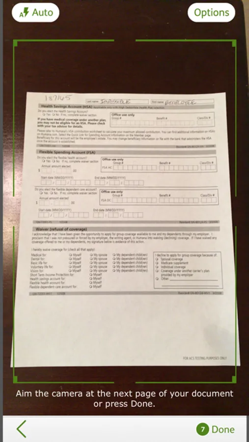 • Point your camera at each page of your document and wait. The camera will focus and capture the image and indicate the number of pages captured up to the maximum of 20 pages.