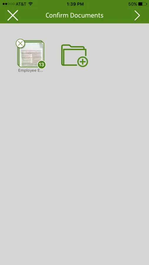 • Add any additional documents (up to a maximum of 5 separate documents) to be sent at the Confirm Documents screen by pressing the Document icon.