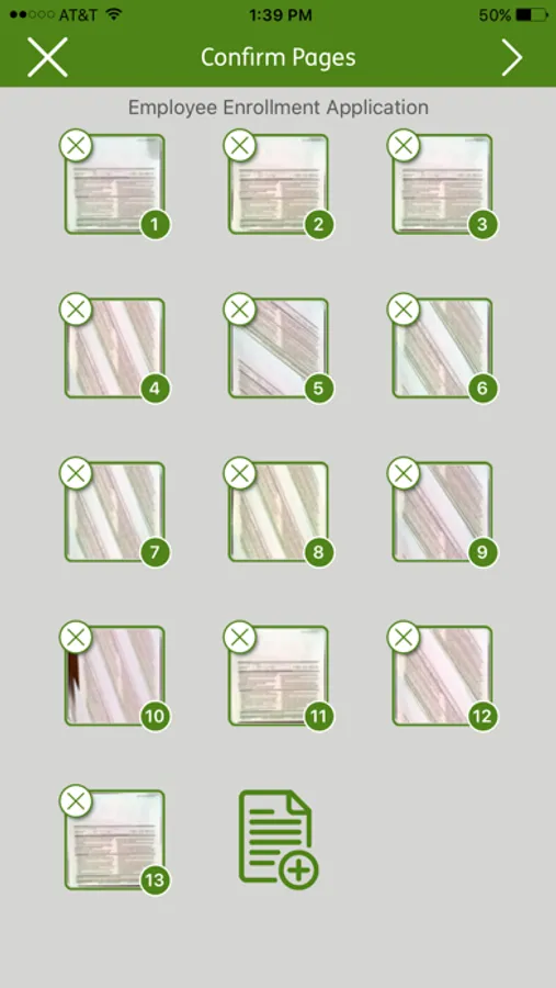 • Crop and adjust the brightness of each page of your document and Confirm Pages or add a Page by pressing the Page icon.
