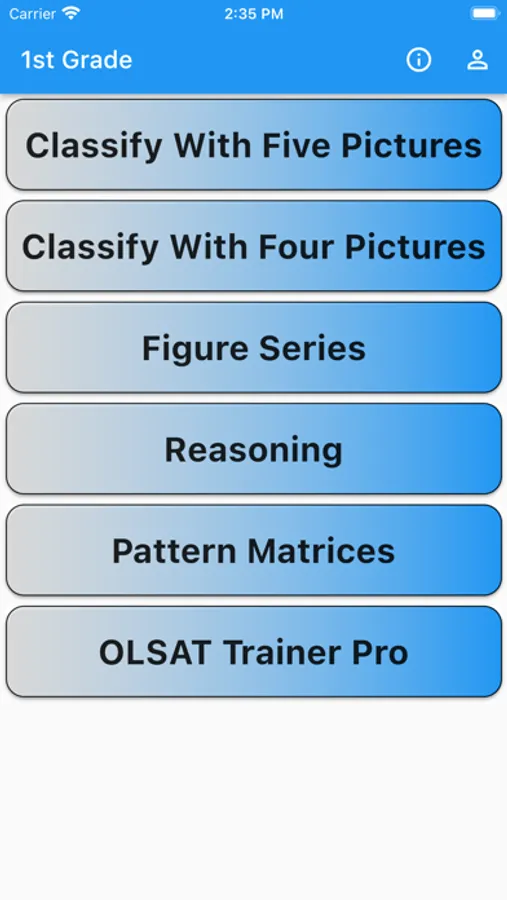 Updated for 2022! Train for gifted and talented testing. This app is designed to increase reasoning and problem solving skills for grade school kids. Specifically the exercises within are for mastering the OLSAT test at the first grade level. Available for all devices but optimized for the iPhone 7 and 7+