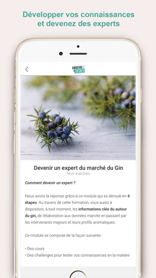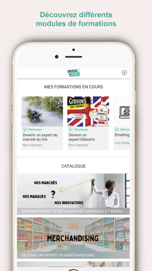L'application vous propose de suivre des modules de formation afin de développer différentes compétences dans le cadre du programme Cocktail de Talents.