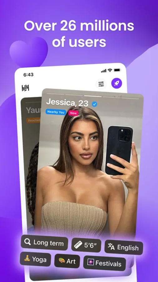 Finally! A dating app with over 26M users worldwide where you’ll build an authentic relationship. Unlike other dating apps, Hily helps you meet people nearby, flirt, date, and establish meaningful connections with local singles and find the love you want. Are you interested in a friendship, casual dating, a partner to chat, a long-term relationship, or just flirting? You will find the date you want on Hily! Real people, real connections, real love stories - that’s what Hily dating app is all about.