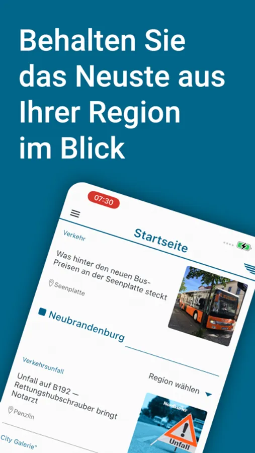 Wir informieren Sie sofort per Push-Mitteilung, wenn etwas besonders Wichtiges in Ihrer Region passiert. Dabei achten wir genau darauf, was und wie häufig wir etwas auf Ihren Home-Bildschirm schicken. Denn wir wollen nicht nerven, versprochen! Falls doch, können Sie die Mitteilungen ganz einfach abbestellen.