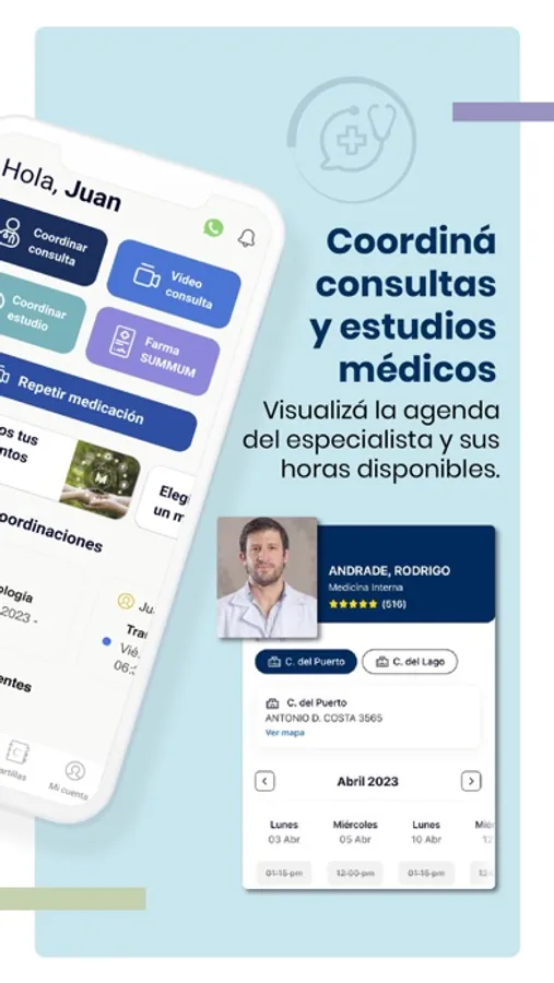 Con SUMMUMApp podés acceder a una Video Consulta Médica, gestionar tus Coordinaciones y las de tu familia, consultar tu Historia Clínica, solicitar Medicamentos a FarmaSUMMUM y coordinar la administración de Vacunas desde tu celular, de forma fácil, cómoda e intuitiva.