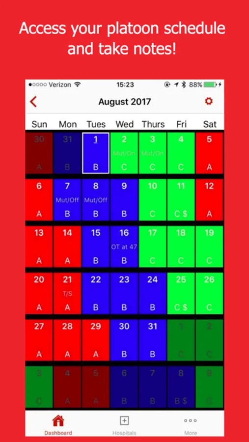 -Platoon Schedule/Calendar with Pay Day & ability to add notes (Shift Calendar)!