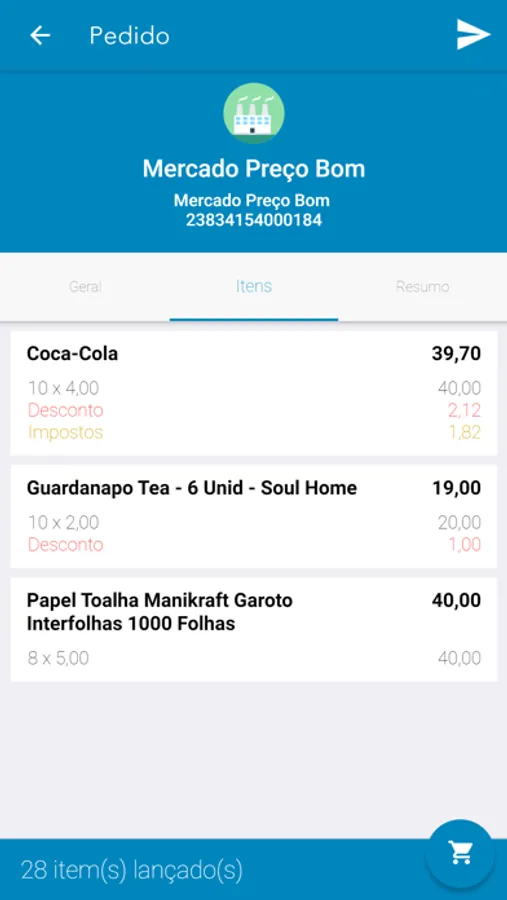 O aplicativo para celular, possuí armazenamento de dados off-line, sendo possível emitir pedidos sem estar conectado a internet, e posteriormente, quando o acesso a internet estiver ativo, fazer a sincronização dos dados.