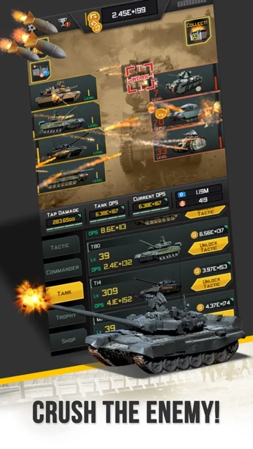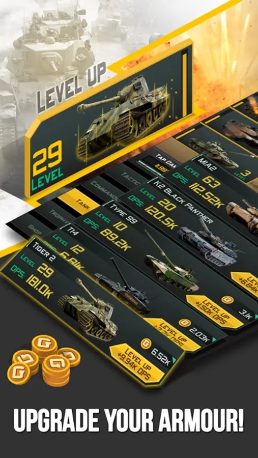 Boots on the ground, fingers on the screen! You are Commander-in-Chief, with an army to build and solidiers to lead, in all-new idle clicker where tapping is modern warfare. Construct your forces by deploying tanks to the field, and tap away to unleash an unrelenting assault.