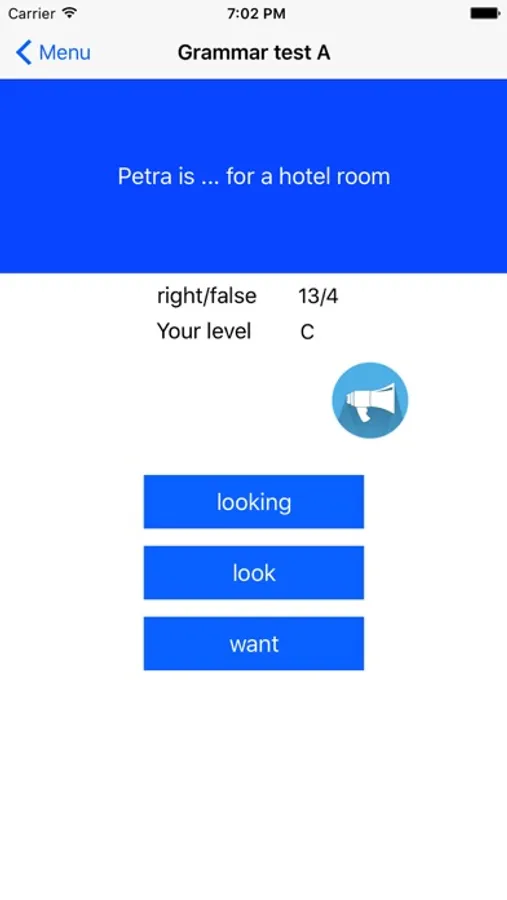 Grammar quiz category is divided in A and B sections.They are sounded, so you will practice the correct pronunciation.