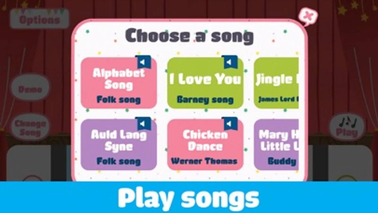 Kid Piano - free piano music games for kids which will help your baby join a musical adventure and learn a lot of interesting things about music. The game contains free baby piano playing where young musician can show all the skills. Also, your kid can choose to learn by playing along the popular kid songs included in the game.