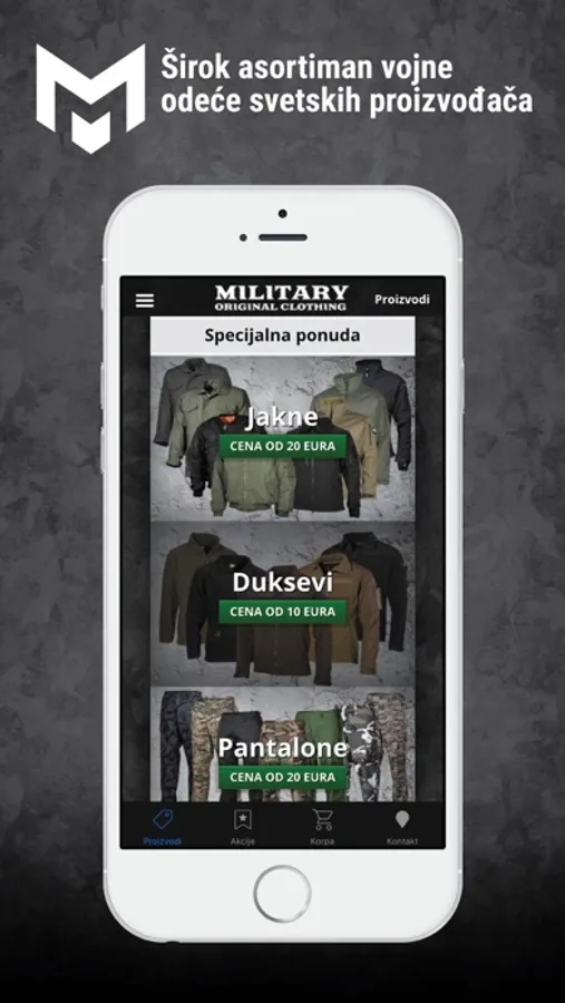 Preuzmite aplikaciju najveće prodavnice vojne opreme u Srbiji i istražite aktuelne popuste i akcije.