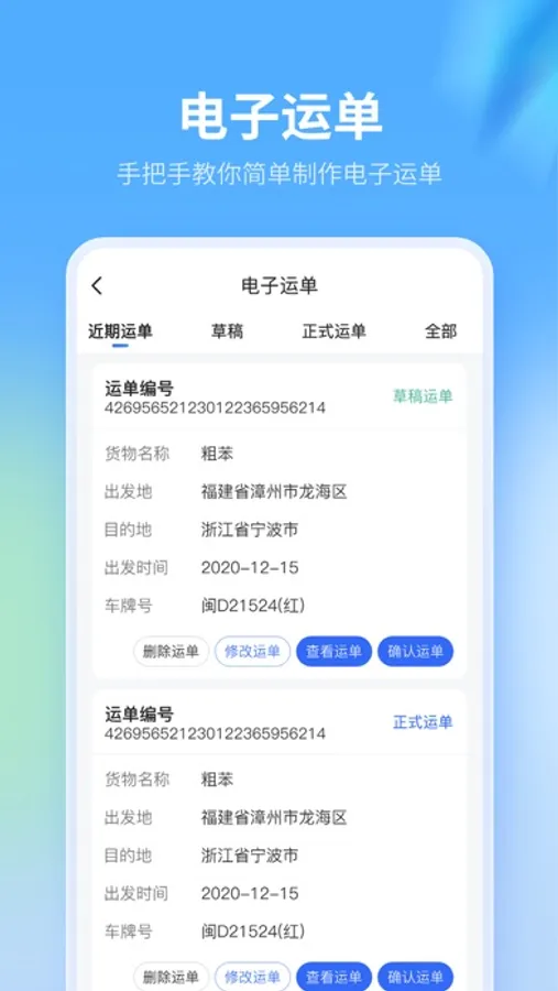 电子运单:按照交通运输部政策要求设计制作,免费提供使用,实际使用以当地要求为准;