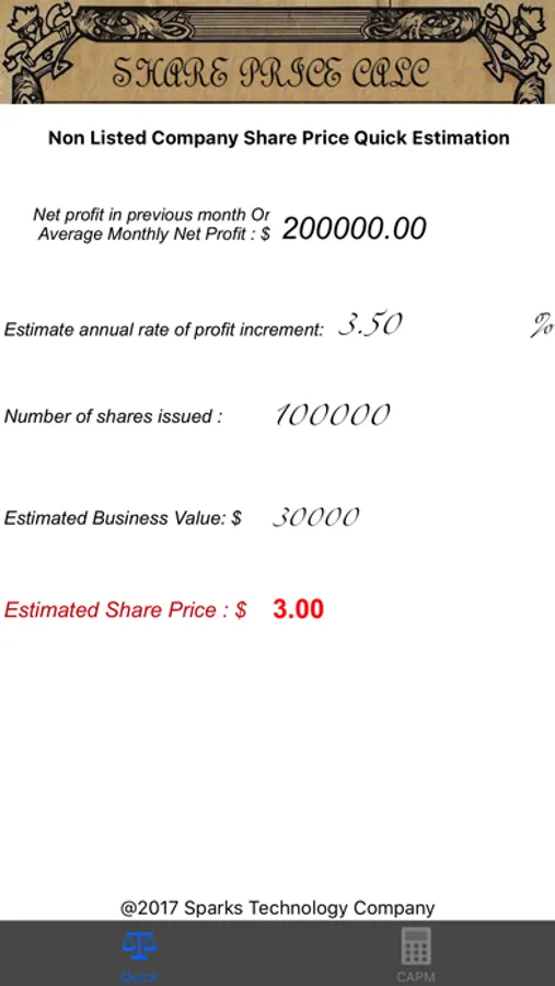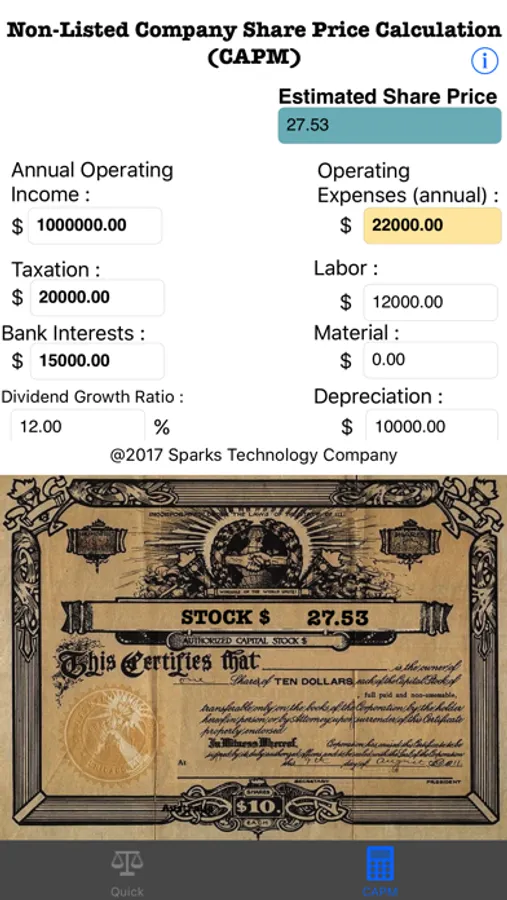 YourShares Valuation app combined with 2 methods of calculation for non listed company on share price estimation.