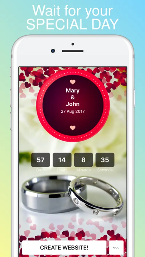Countdowns are super-personalizable. You'll be able to unleash your creativity! Hundreds of high quality backgrounds to use, decorations and also the possibility to use your own photos. You'll be able to create the perfect countdown for your wedding.