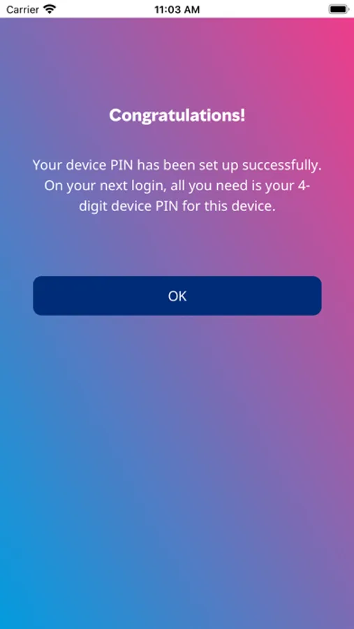 • Create your own 4 digit device PIN – no need to remember your website login details.