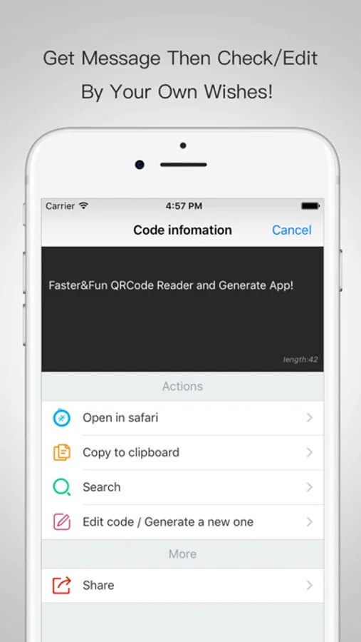 * Easily scan QRCode through camera and then edit it by your own way.